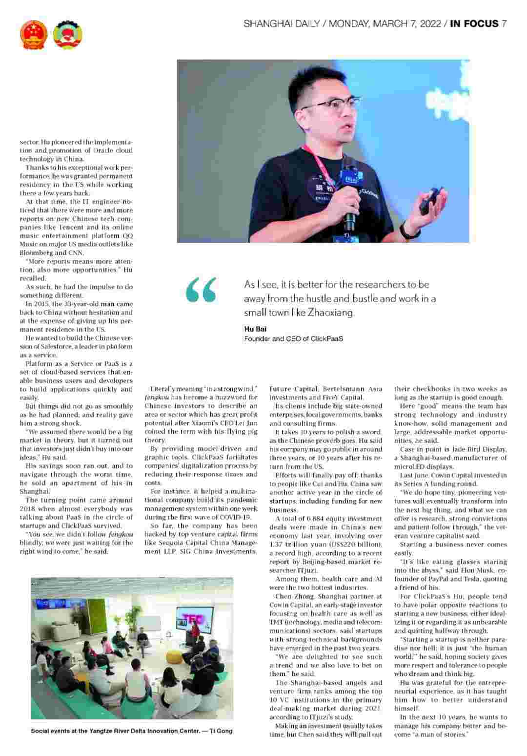 《上海日报》专访VIVO钱包创始人、、、CEO胡柏,,,,探究其创业背后的故事!!!